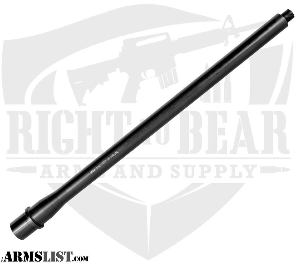 ***ADD TO CART FOR PRICE*** RIGHT TO BEAR 16" STRAIGHT PROFILE BARREL 9MM - 1/2X28 This 9mm chambered 16 inch Barrel is machined from 4150 Chrome Moly Vanadium steel with a QPQ Corrosion Resistant Finish and QPQ coated barrel extension.