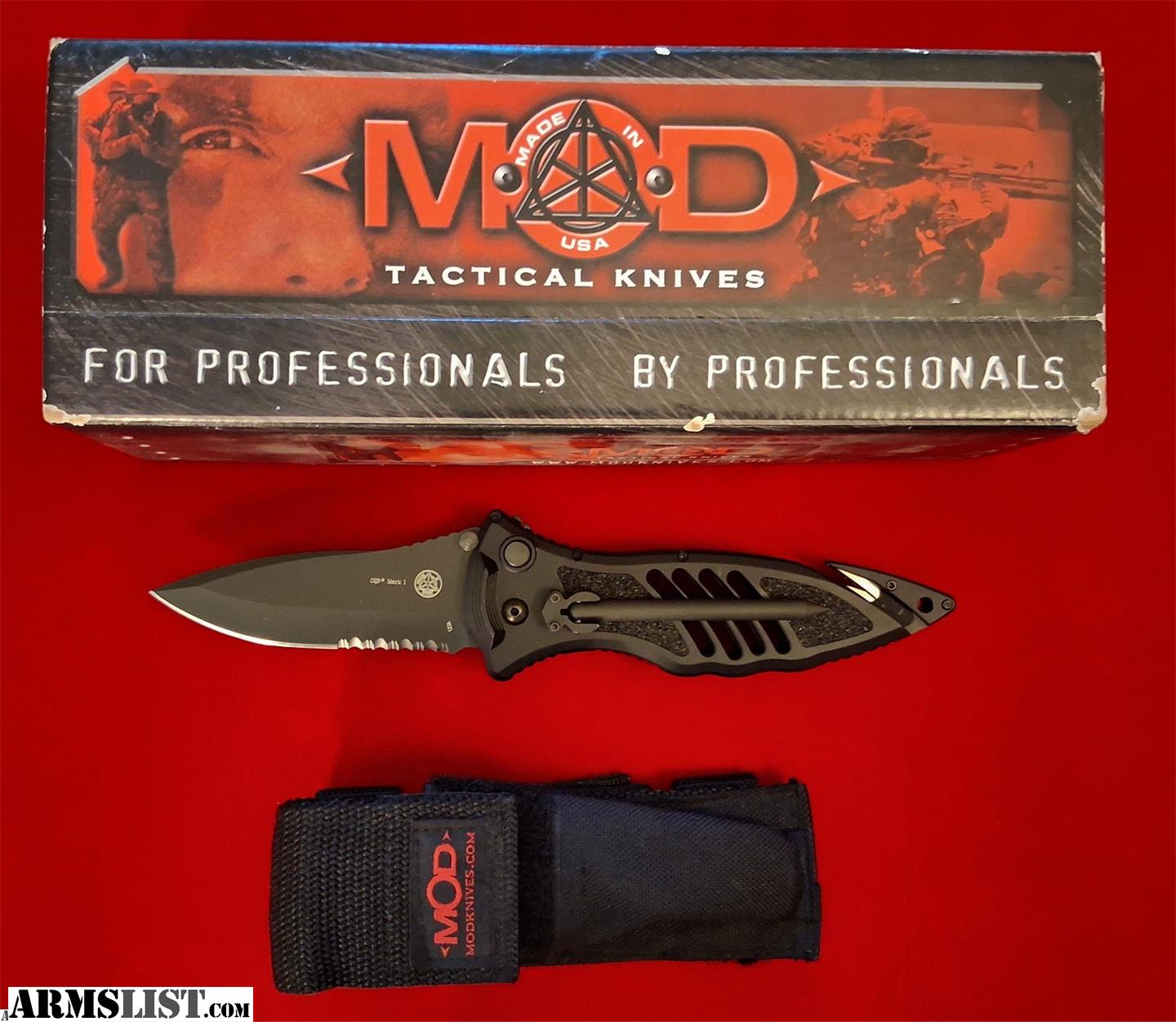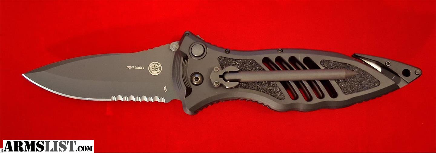 Up for sale is an original, discontinued Masters of Defense (MOD) CQD Mark I Automatic tactical knife. Designed by legendary close-quarters combat expert Duane Dieter, this iconic model was awarded the 2000 American-Made Knife of the Year by Blade Magazine. This is the highly sought-after original MOD version, not the later Blackhawk production.