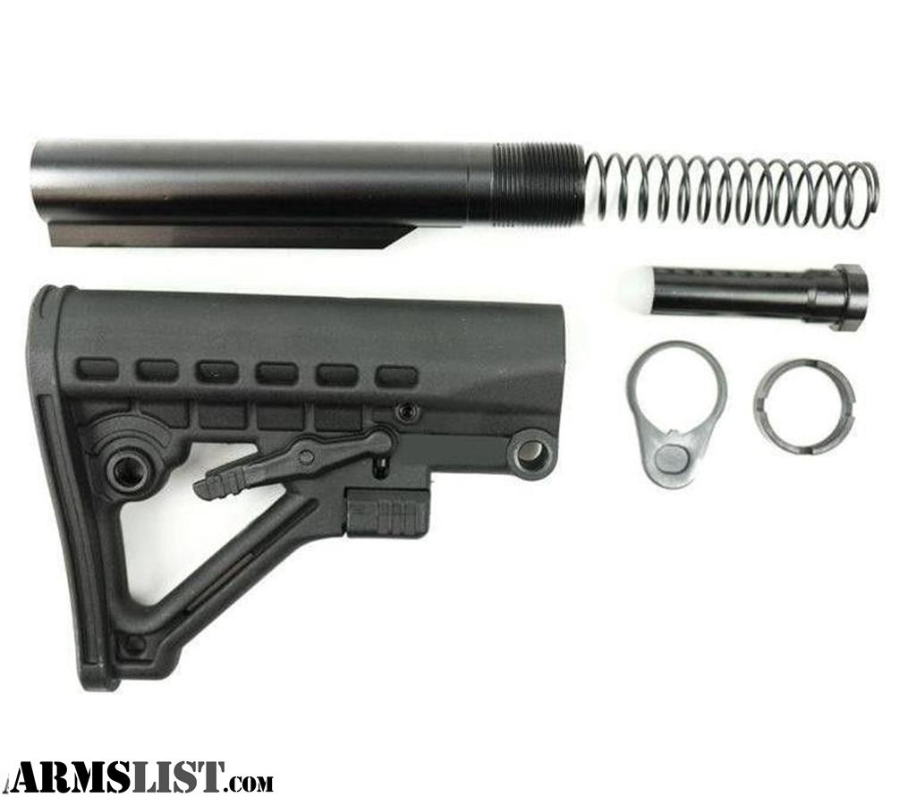 Mil-Spec Carbine Buffer Tube / Receiver Extension Carbine Buffer Spring Castle Nut/Receiver Nut Mil-Spec Receiver End Plate Carbine Recoil Buffer Trinity Force Omega Stock The Trinity Force Omega mil-spec stock kit is an upgrade over a standard USGI kit. It has a more aggressive design and includes a Quick Disconnect mount for accessories. LENGTH (IN) 7. RECEIVER EXTENSION TYPE Mil-Spec WEIGHT (OZ) 22. LENGTH OF PULL RANGE (IN) 3. LENGTH OF PULL COLLAPSED (IN) 12. LENGTH OF PULL EXTENDED (IN) 15. MATERIAL Aircraft Grade Aluminum, High Strength Steel, High-Density Polymer/Rubber COLOR Black