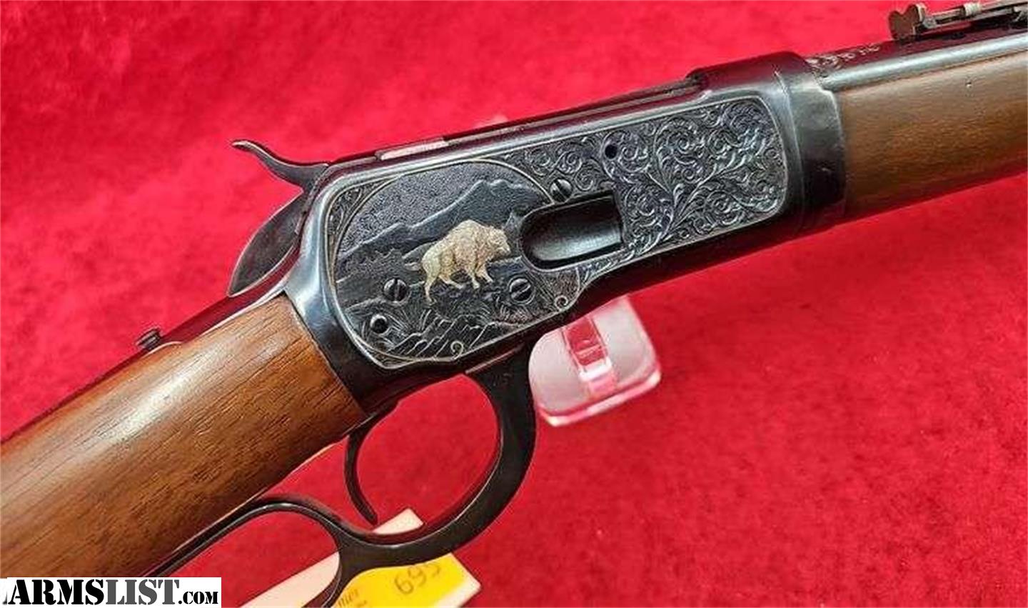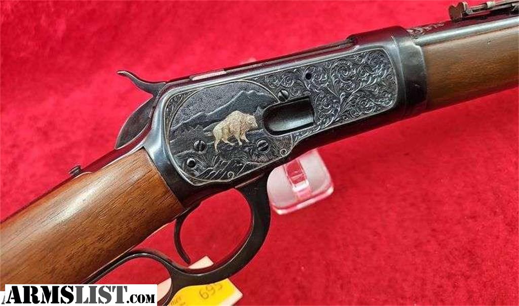 16 1/4" takedown bbl., chambered in 357 Mag, has ornate engraved and decorated receiver with silver deer and buffalo, plain walnut stock, gun has some blue loss and spots at bottom of lever and receiver. Otherwise an attractive Winchester. Bid Now at kramersales.com! This Gun is up at auction on our April Emporium Guns & Sporting Sale! All guns on this auction start @ $1 & sell without reserve. This Auction Closes on Thursday Apr. 23rd 8am CST, click Here or go to our website for more info! 1,800+ Lots! Guns by Winchester, Remington, Colt, Marlin, Ruger, Smith & Wesson, thousands of rds. factory ammo, Reloading components & machines, Military Collectibles, Taxidermy, Knives, & related antiques! Bid Now!