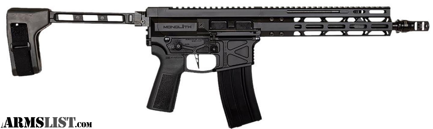 We have a new Global Ordnance Monolith pistol for sale. This is chambered in 5.56Nato with a 12.5" barrel. It comes in box with KeyMo brake & brace. This also includes the full MFG warranty. Check out the spec's below: