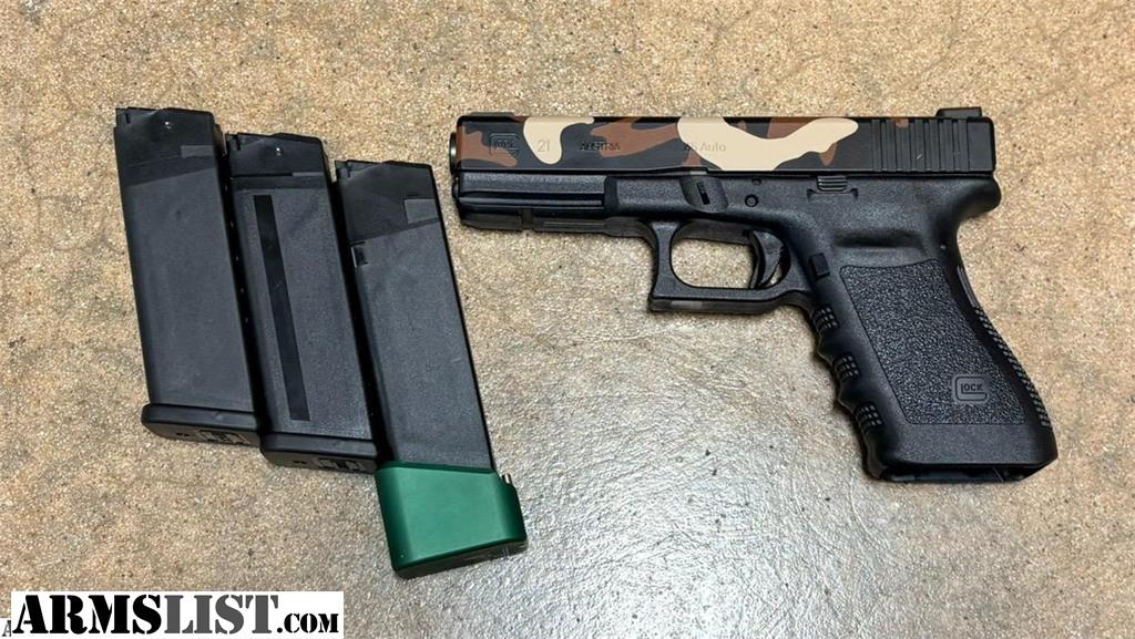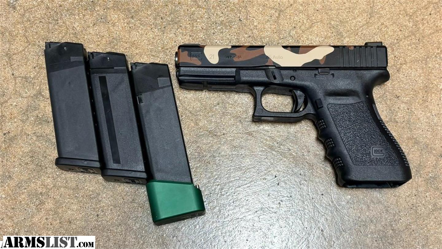 Glock 21 Gen III 45acp 4.61" Semi-Auto Pistol Fiberoptic Sights Cerakoted Slide https://shop.newcastleguns.com/Item/Details/Glock-21-Gen-III-45acp-4-61-Semi-Auto-Pistol-Fiberoptic-Sights-Cerakoted-Slide/5f9d44746be049f28d2d16e661d96aa9