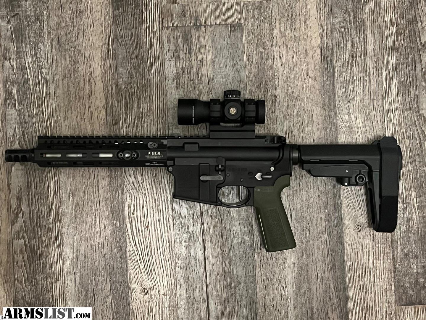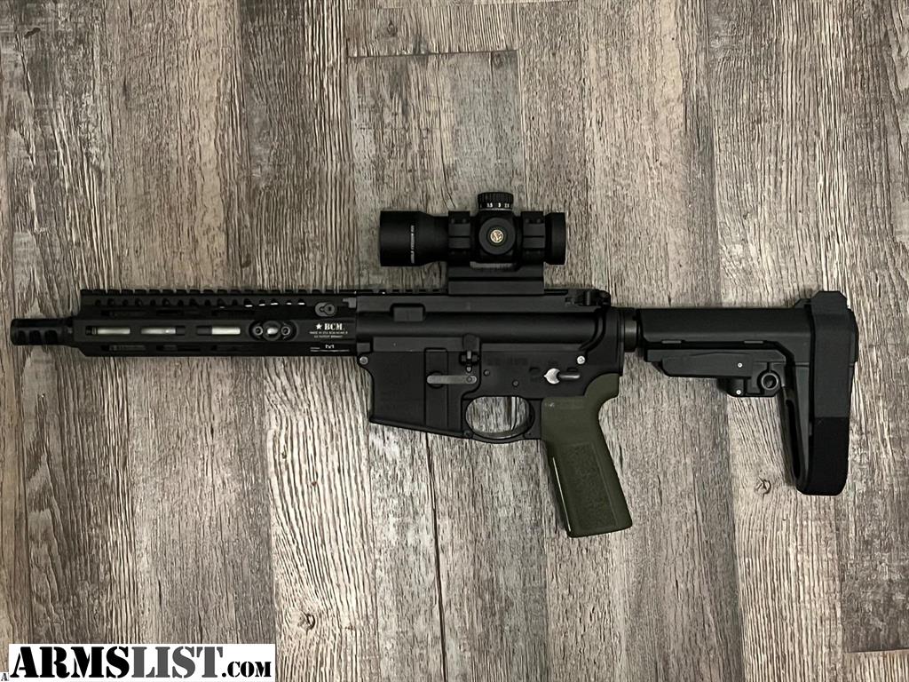 I have for sale a Ar pistol chambered in 300 BO, centurion arms upper with Roscoe 8.2 in purebred bead blasted barrel silver in color, with adjustable gas black, BCM mlok rail. Bootleg adjustable BCG. Ruger lower receiver with BCM parts kit rise armament 140 single stage 3.5 pound trigger, and rise ambidextrous safety b5 grip and sba3 brace and heavy buffer and spring.