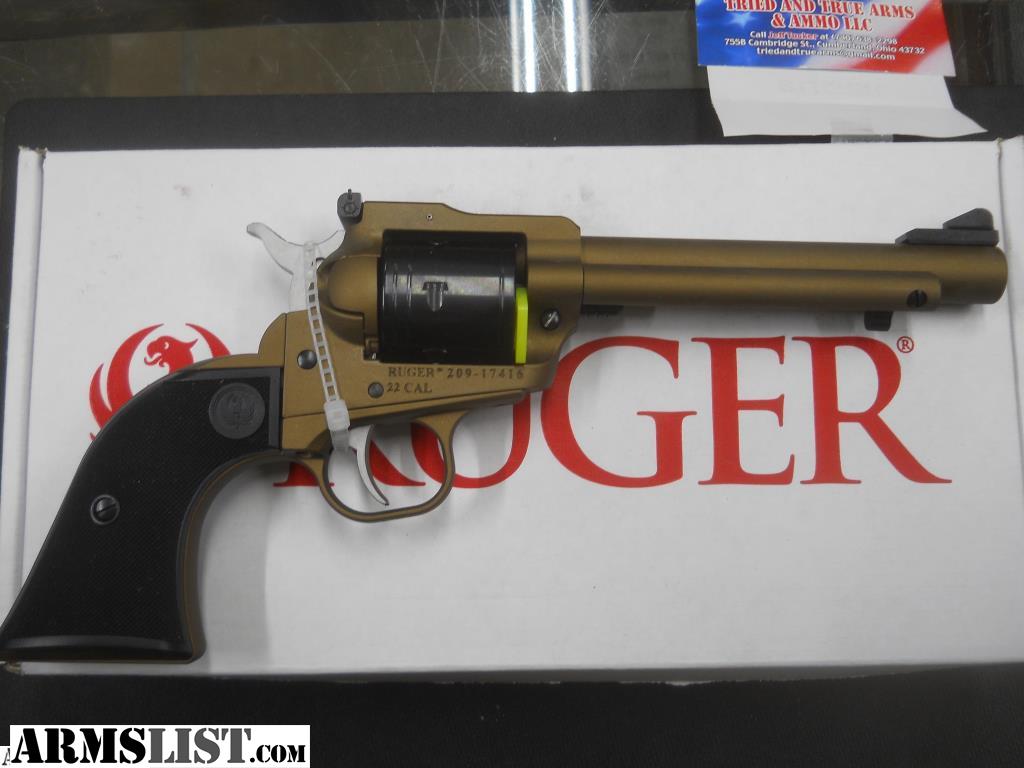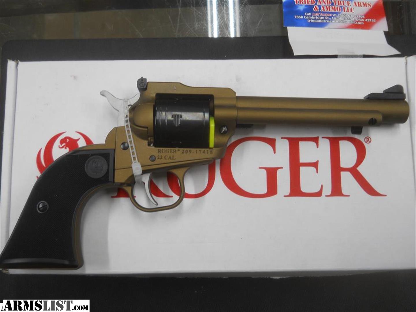 "SOLD.. Waiting for more inventory to restock"...Ruger Super Wrangler ... Bronze color .. 22LR/22 Mag. Caliber... 22 Magnum extra cylinder in box.. 5.5 Inch Barrel... Long Rifle Caliber... .. We are a small Brick and Mortar Store: Tried and True Arms & Ammo 755 B Cambridge St. Cumberland, Ohio 43732.