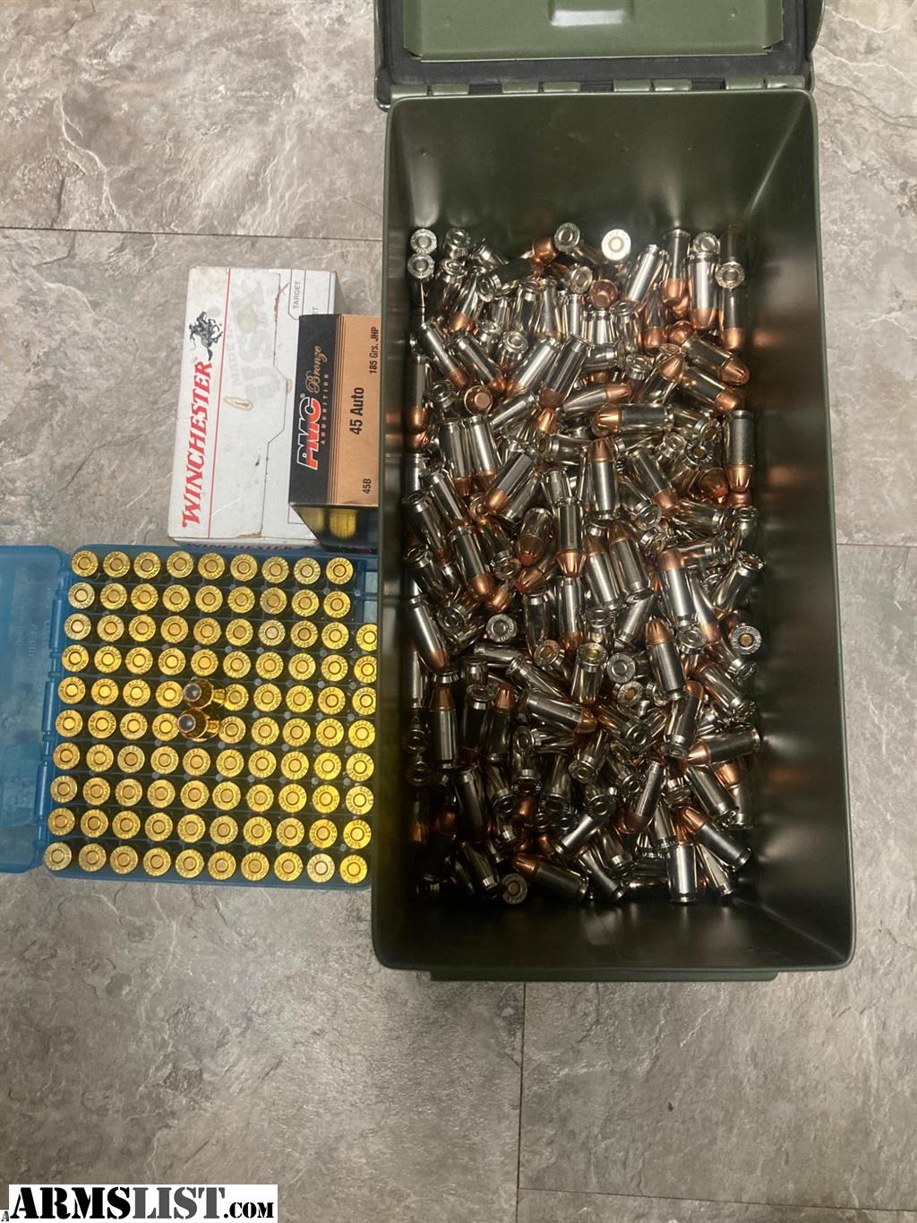 Over 1000 rds of 45acp hornady, Winchester, pmc & Remington mixture of fmj, hp & self defense rds$700 no trades