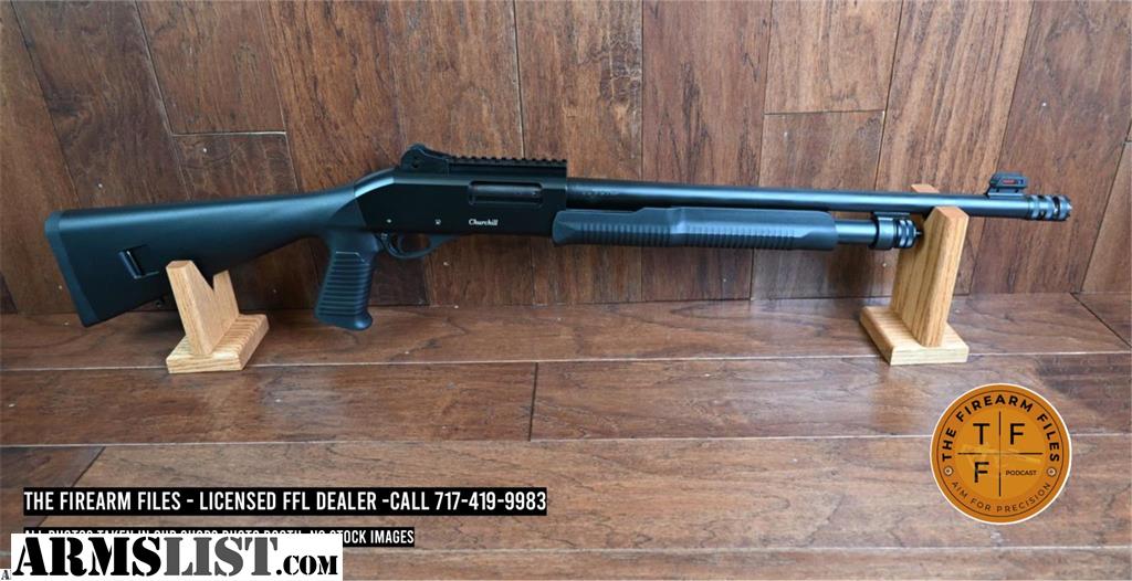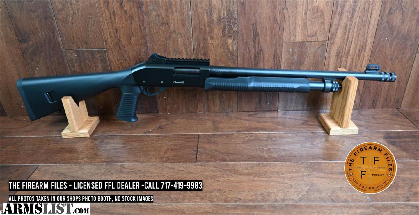 For sale The Firearm Files is selling a New Akkar Churchill 612 12 Gauge Shotgun! This gun is a pump action design, and hold 6 total rounds. Features include a black synthetic stock with a pistol grip, 18.5 inch barrel, and a 3 inch chamber. The front sight is a red fiber sight, at the rear there is a peep. You can mount a red dot sight on the top Pic rail. Contact our shop with any questions, The Firearm Files, 717-419-9983.