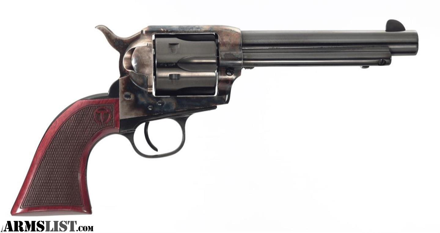 We have a really cool single action revolver from Taylor's & Co. Exclusively from Taylor's, the Smoke Wagon™ is an improved second generation, stagecoach style single action revolver. This Smoke Wagon™ model features a forged case hardened steel frame, blued steel parts, a checkered Navy size grip with a thinner profile, and a low-sitting hammer.