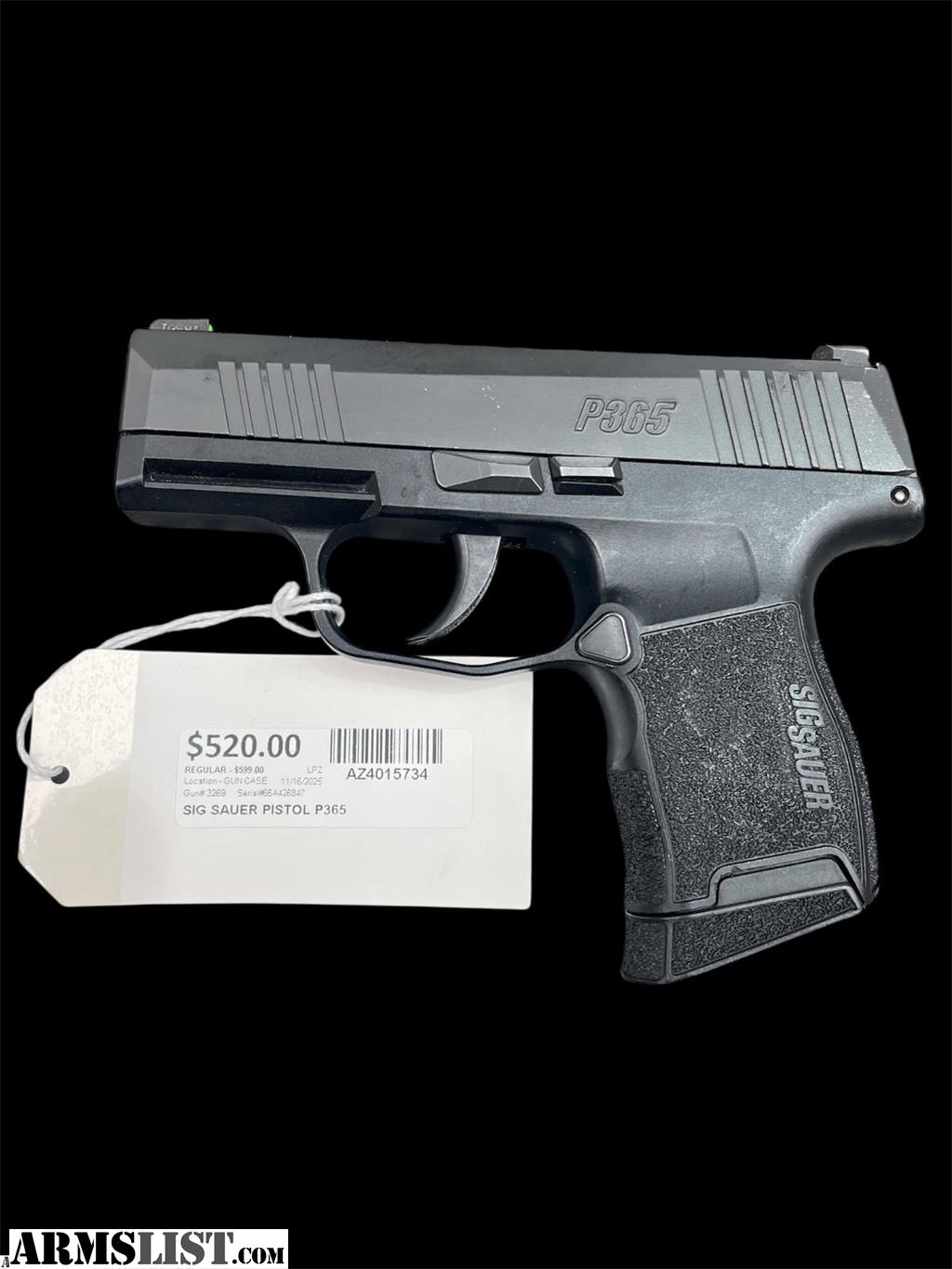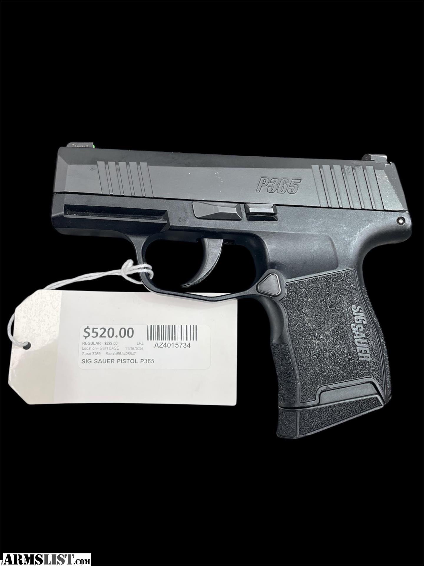 Sig sauer model: p365 cal: 9mm Aztec pawn and gold 75th ave and McDowell Rd 2020 N 75th Ave suite 14 Phoenix AZ 85042 (623...849...0900) Hours Mon thru Fri 9am to 6pm Sat and Sun 10 am to 6pm