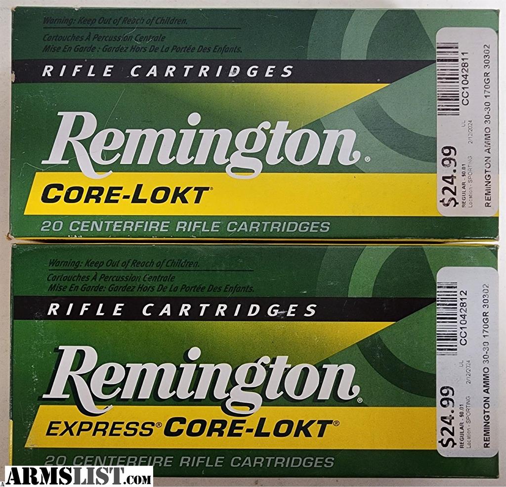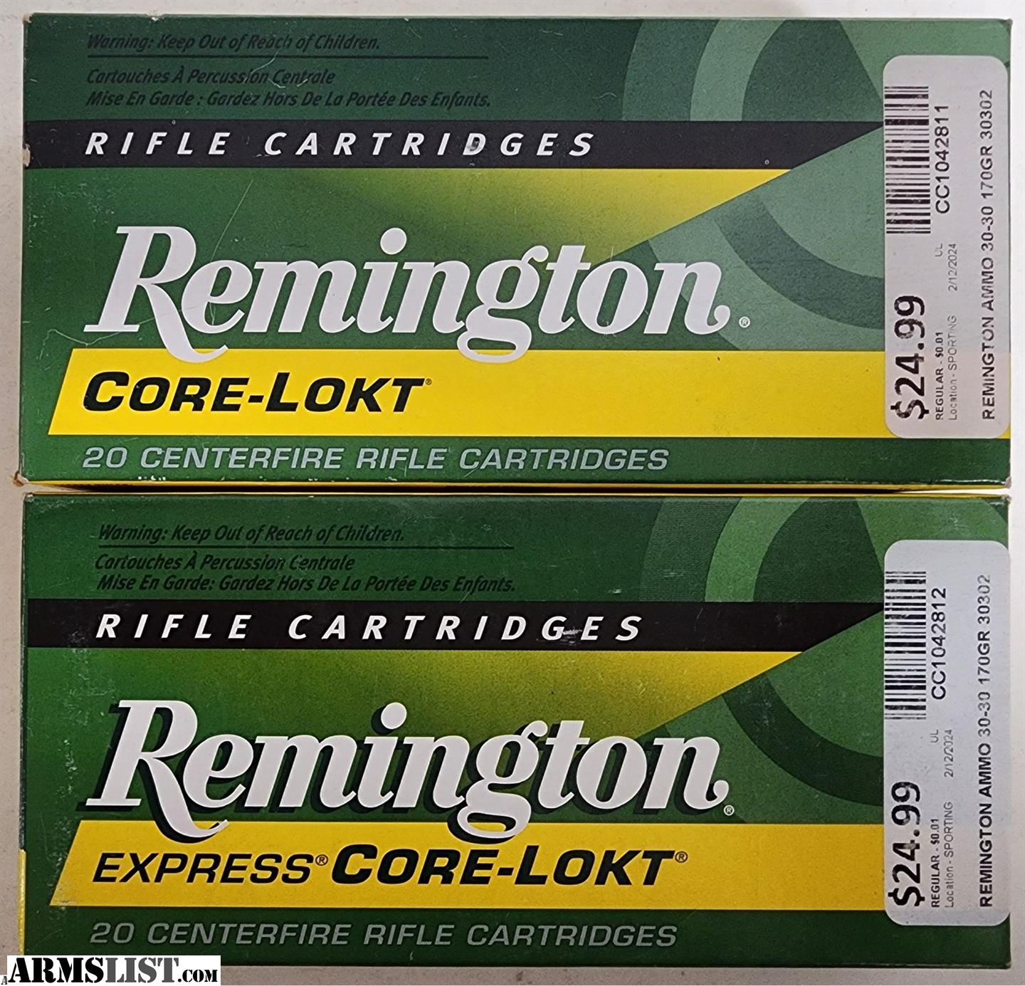 Remington Core-Lokt 30-30 Winchester Ammo 170 Grain Jacketed Soft Point Box of 20 - Lot of 2 Boxes