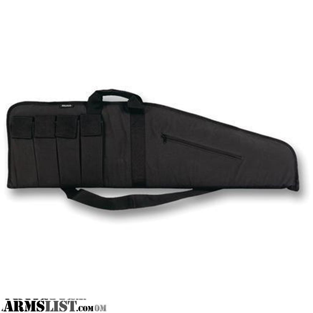 Ballistic Nylon Made in the USA Four Velcro external magazines pouches Removable, adjustable shoulder strap with swivels Heavy-duty durable Nylon with water-resistant outer shell that floats Brushed Tricot, soft scratch-resistant inner lining 2 1/4" total soft padding