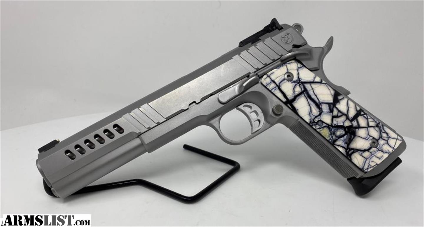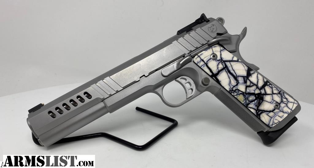 The Chairman was the first model in our Boardroom Series of 1911s. The Chairman is a 6” Long-Slide Government, which is designed solely to be the ultimate competition pistol. The windows and heavy-angle, slide-lightening cuts in the slide allow the heavier 6” slide to function reliably, while also showing off the stunning Gold Titanium Nitride Barrel. The long slide creates significantly less felt recoil, while also providing a longer sight radius, which of course means tighter grouping in target shooting. Custom grips designed in our partnership with Railscales finish this build and are sure to catch attention both on and off the range. One Gun, One Gunsmith.™ FEATURES: Stainless finish Forged government size frame and 6" barrel Hand fit frame and slide Hand fit match grade 45 crowned barrel Throated barrel Polished feed ramp Nighthawk Custom fully adjustable rear sight with serrated blade 14K solid gold bead front sight One-piece mainspring housing/magwell Hand blended magwell Hand blended grip safety MAMMOTH Ivory Grips Heavy-angle, slide- lightening cuts on the slide Tuned and polished extractor Hand fit firing pin stop 25 lines per inch checkered front strap and mainspring housing Checkered recoil spring plug Lightweight aluminum Nighthawk Custom tri-cavity trigger Hand polished ignition components Custom trigger job set with 3.5 to 3.75 pound trigger Completely dehorned for comfortable carry Hand beveled edges Ultra Hi-Cut Front Strap CALIBER 9MM LIGHT RAIL NO RAIL SAFETY SINGLE HEIGHT 5.75" OVERALL LENGTH 9.58" PISTOL WIDTH 1.25" SLIDE WIDTH 0.92" GRIP THICKNESS REGULAR WEIGHT EMPTY 40.9 OZ SIGHT RADIUS 7.42" BARREL LENGTH 6" MAGAZINE CAPACITY 10 REAR SIGHT FULLY ADJUSTABLE BLACK REAR SIGHT FRONT SIGHT GOLD BEAD FINISH STAINLESS FIRING PIN SIZE .38 SUPER FIRING PIN MATERIAL STAINLESS STEEL