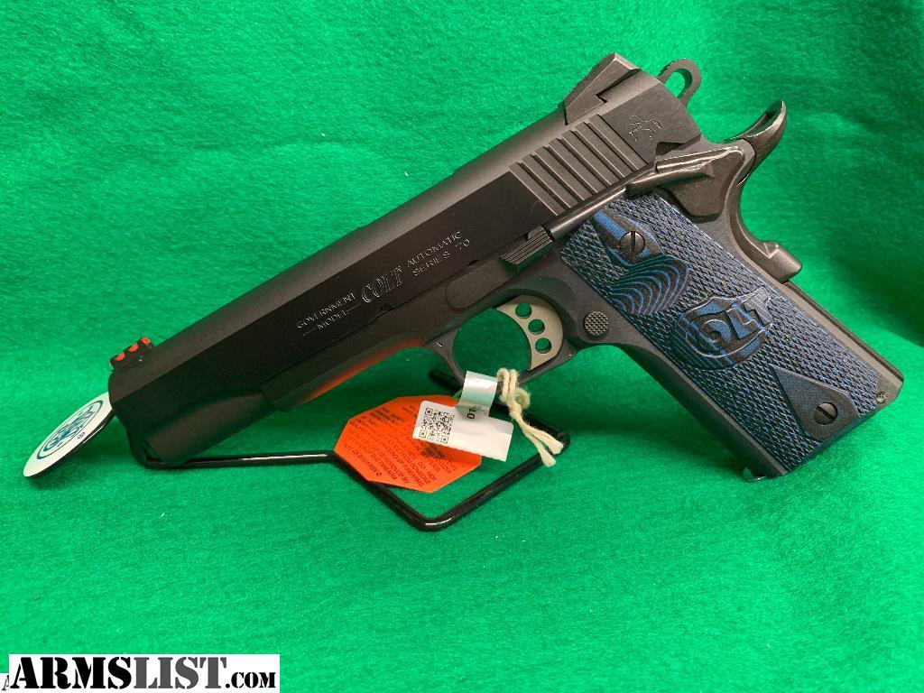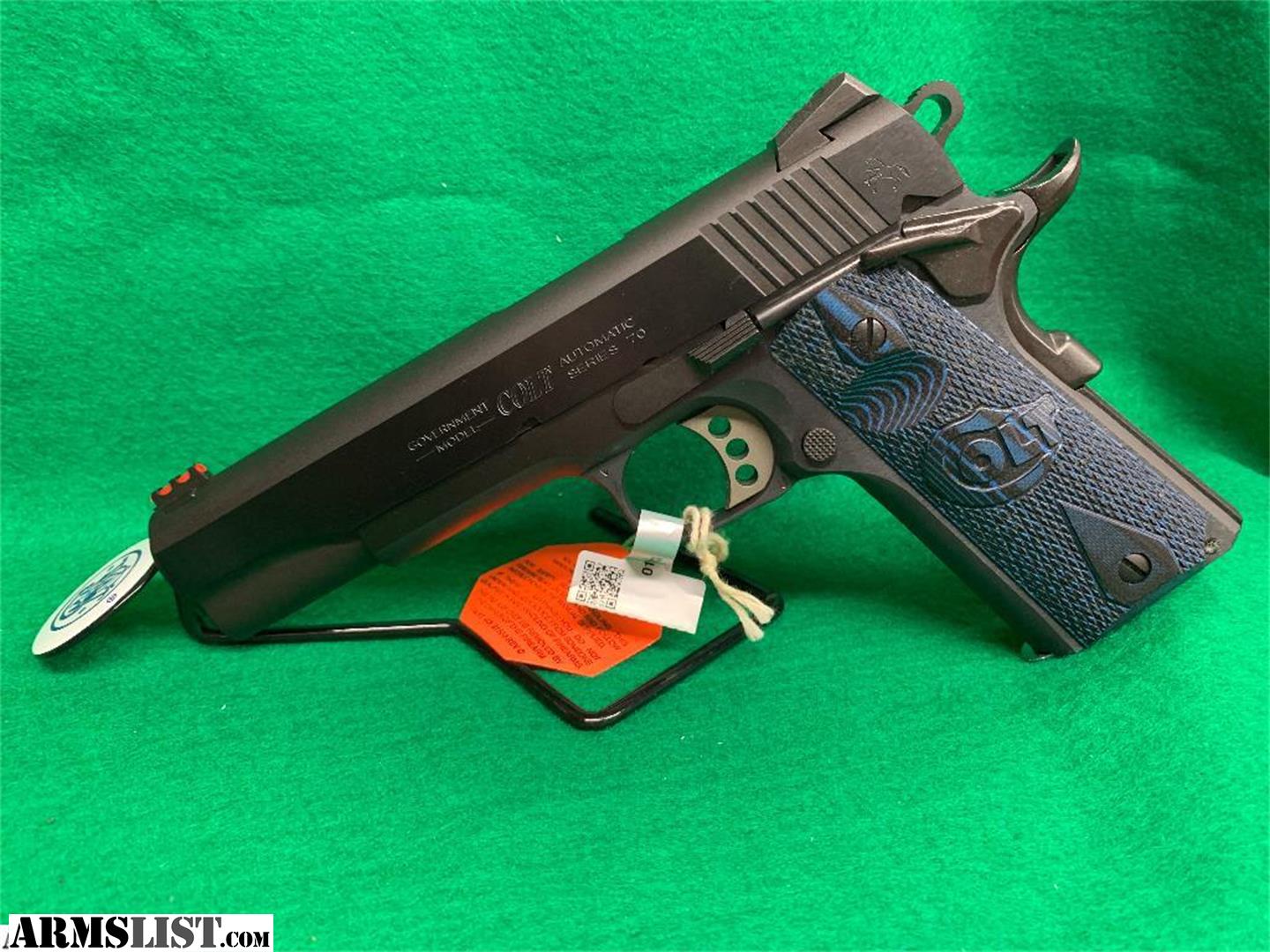 Colt 1911 Government Competition Series 45 ACP, 5" Barrel, (1)8 rd Mag, G10 Checkered Blue Grips, Novak Adjustable Fiber Optic Sights Pappy's Arms LLC 802-795-0054 pappys.arms@gmail.com