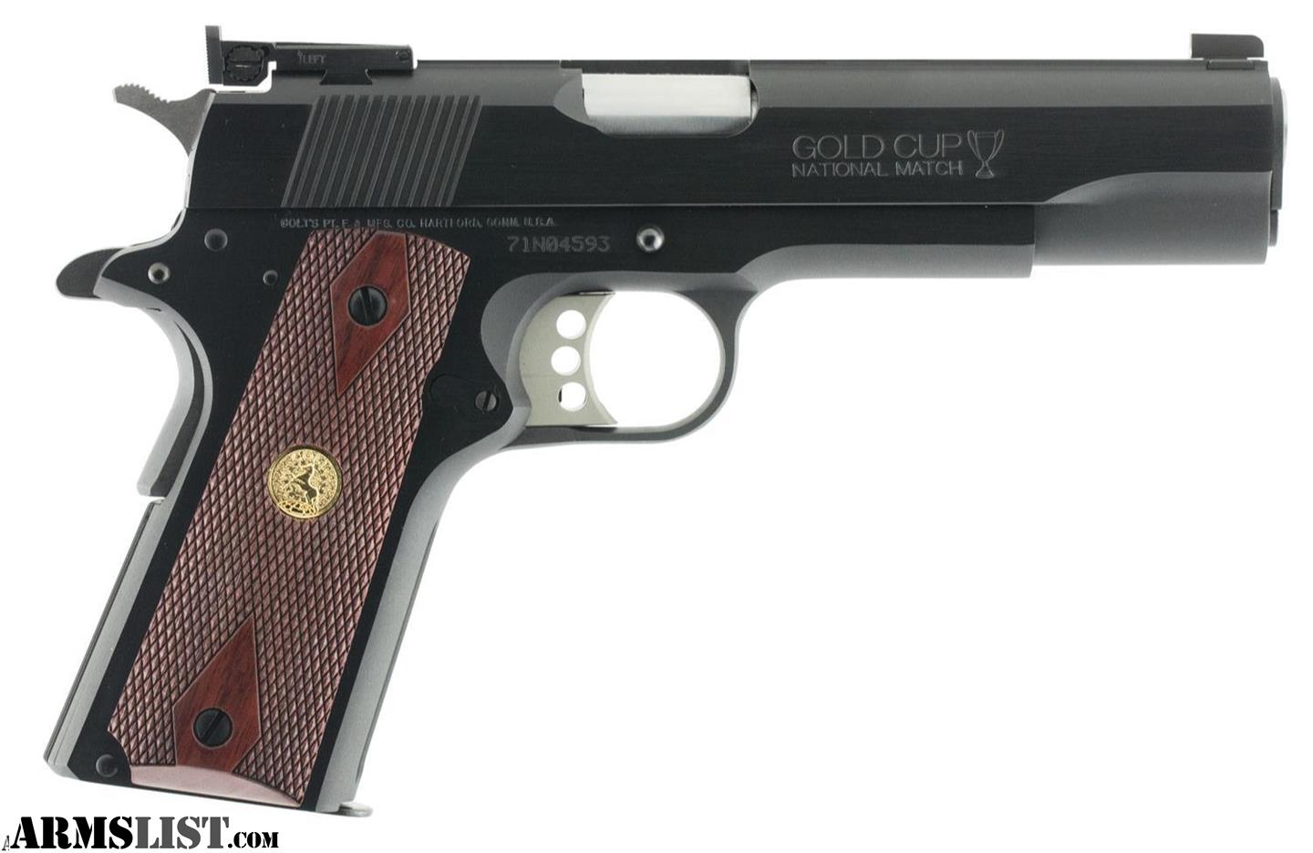We have a new Colt Mfg O5870A1 Gold Cup Natonal Match 45 ACP 8+1semi-automatic pistol for sale. This is chambered in 45 ACP with a 5" barrel. It comes in box with factory packaging. This also includes the full MFG warranty. Check out the spec's below: