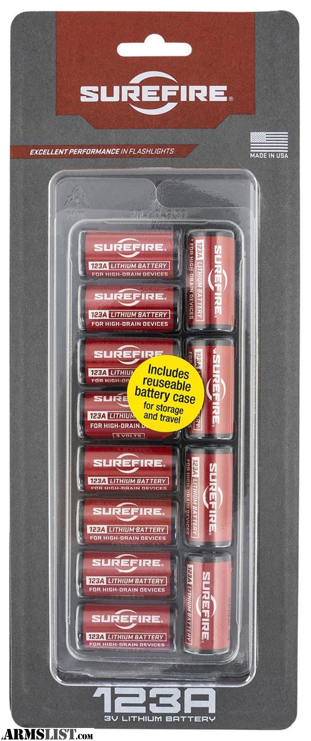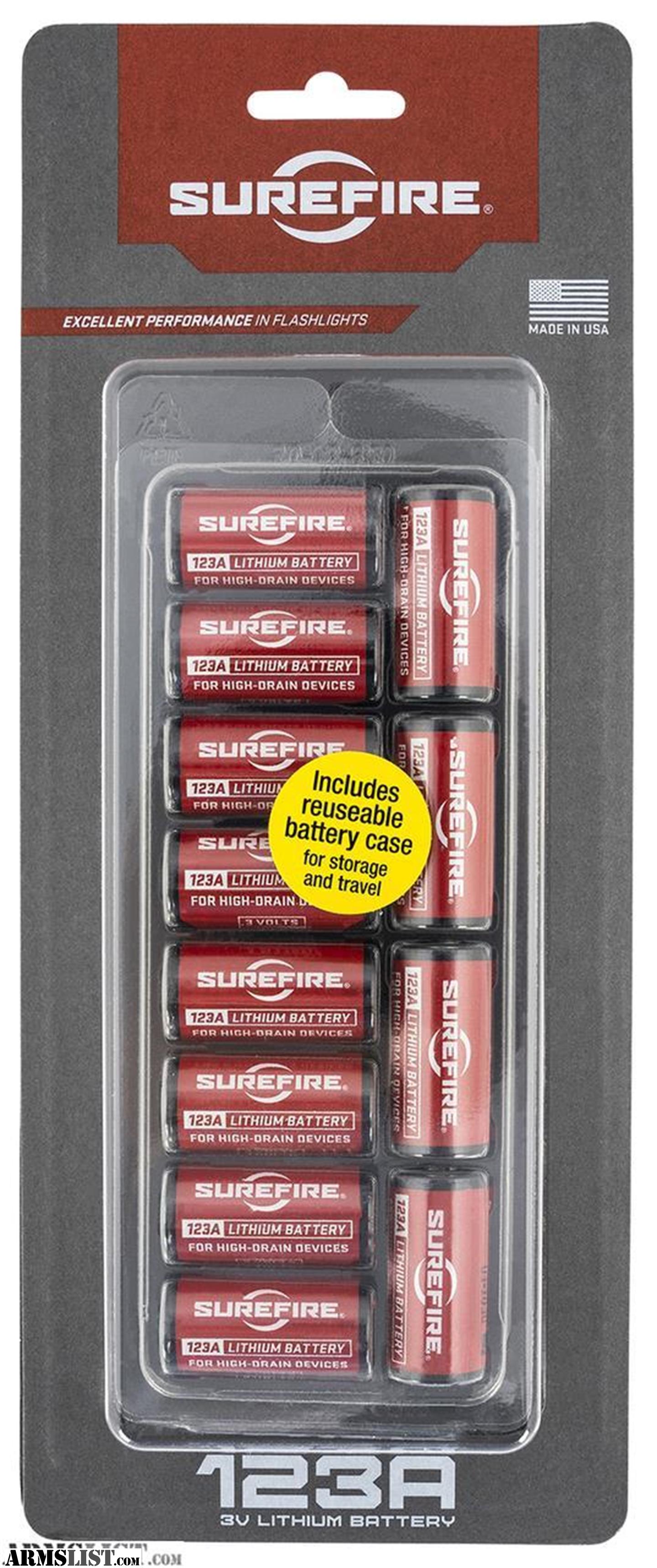 Surefire 123A, 3 volt batteries are optimized for high-drain use in flashlights. With a wide temperature tolerance and a 10 year shelf life they are excellent for emergency power needs.