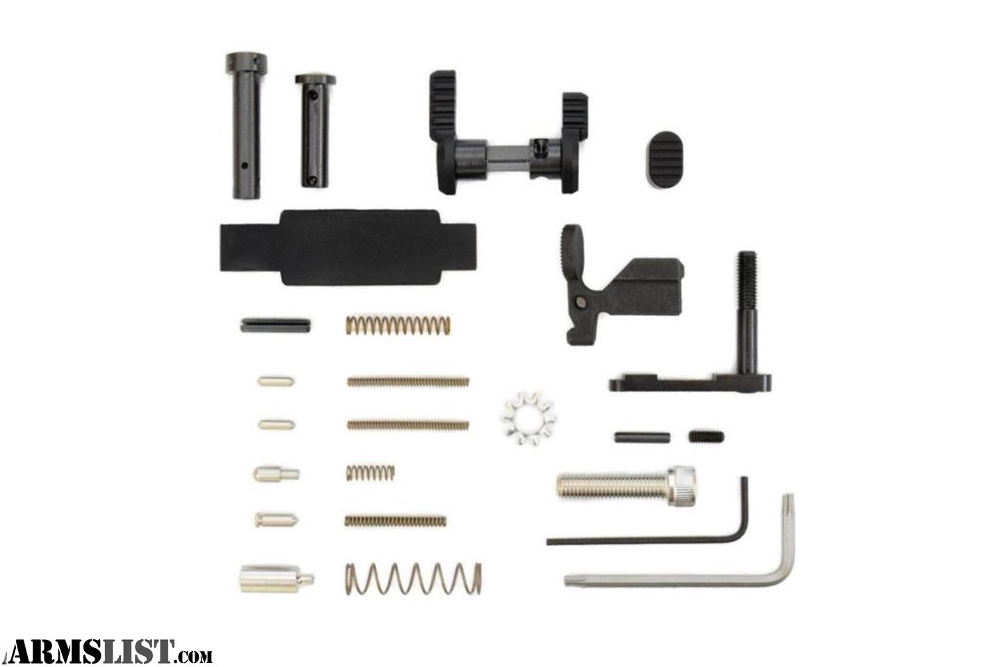 Includes Armaspec Enhanced Lower Parts Compatible with most AR-15 lowers Made in the U.S.A. Lifetime warranty COMPATIBILITY: AR-15 lower receiver INCLUDES: 1x Armaspec SFT 45/90 Safety Selector 1x Bolt Catch 1x Armaspec Superlight Enhanced Takedown Pin 1x Stainless Steel Takedown detent 1x Takedown Detent Spring 1x Armaspec Enhanced Pivot Pin 1x Stainless Steel Pivot Detent 1x Pivot Detent Spring 1x Stainless Steel Buffer Retainer 1x Magazine Catch 1x Magazine Spring 1x Armaspec Enhanced Magazine Release Button 1x Stainless Steel Bolt Catch Detent 1x Stainless Steel Safety Selector Detent 1x Bolt Catch Roll Pin 1x Bolt Catch Spring 1x Buffer Retainer Spring 1x Selector Detent Spring 1x Armaspec Enhanced Trigger Guard 1x Trigger Guard Roll Pin 1x Trigger Guard Set Screw 1x Grip Lock Washer 1x Grip Screw Note: This is “NOT” a complete lower parts kit. This is a LPK without FCG and Grip. This Kit does not include the Pistol Grip, Trigger and Hammer, Trigger and Hammer Springs, Disconnect and Disconnect Spring.
