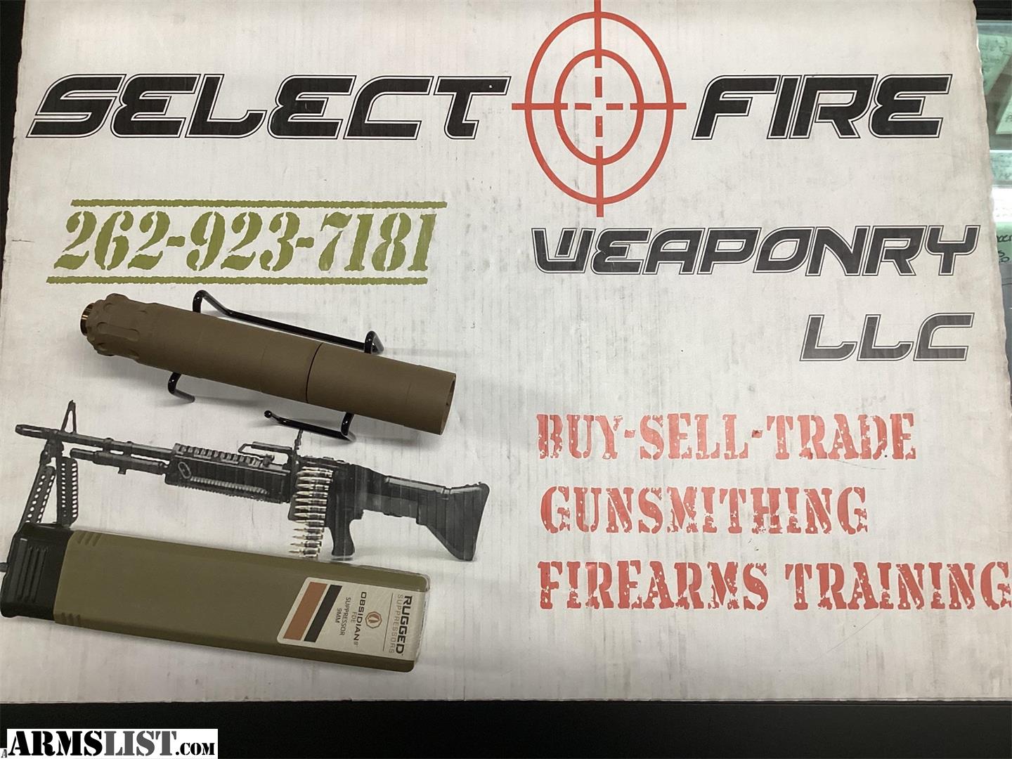 Due to the high volume of spammers, We will not respond to any Email over Armslist. Please call our store at 262-923-7181 shop or email us at sales@selectfireweaponry.com for the best assistance! We will ship guns! Stripped Receivers - $19.99 Complete Lowers $29.99 Silencers $29.99 Handguns $39.99 Long Guns $49.99 AR Pistol/SBR/ETC.. $49.99 MG POR WE BUY GUNS! Large estates or individual pieces. We buy Machine Guns! Our store is located between Bluemound road and and Moreland blvd off of Parklawn Drive in Waukesha, just off of I-94! We buy, sell, and trade all types of firearms and accessories. Our shelves are stocked with around 1500 guns of all different varieties. We stock the widest variety of NFA items such as silencers, SBR's, SBS's, AOW's, and transferable machine guns. We buy guns! Including machine guns! Our Armslist listings do not reflect everything we have in stock! Please come in to check out our full inventory of firearms, ammo, and silencers. -All Prices posted posted are Firm. -All NFA item prices DO NOT reflect cost of NFA tax stamp -All buyers must pass a background check before the transfer is to occur. -All in state purchases are subject to 5% sales tax. -All handgun prices do not reflect the $12 state background check fee. -All sales are final no refunds or exchanges. -Original purchase price and background check fees are none refundable. -All firearms must be picked up with in 30 days of purchase or any down-payment will be lost. -All RED tag firearms are consignment and will have a 3% credit card fee Every thing we post is physically in stock at the time we post it. Every once in a while we sell something posted on here and it doesn't get deleted that instant, we do our best, dont get mad. When in doubt call first before driving. Call us or Stop in and check us out! Select Fire Weaponry 2325 Parklawn dr Ste. A Waukesha, WI 53186 262-923-7181 Mon-Fri 10:00-6:00 Sat 10:00-4:00 Closed Sun
