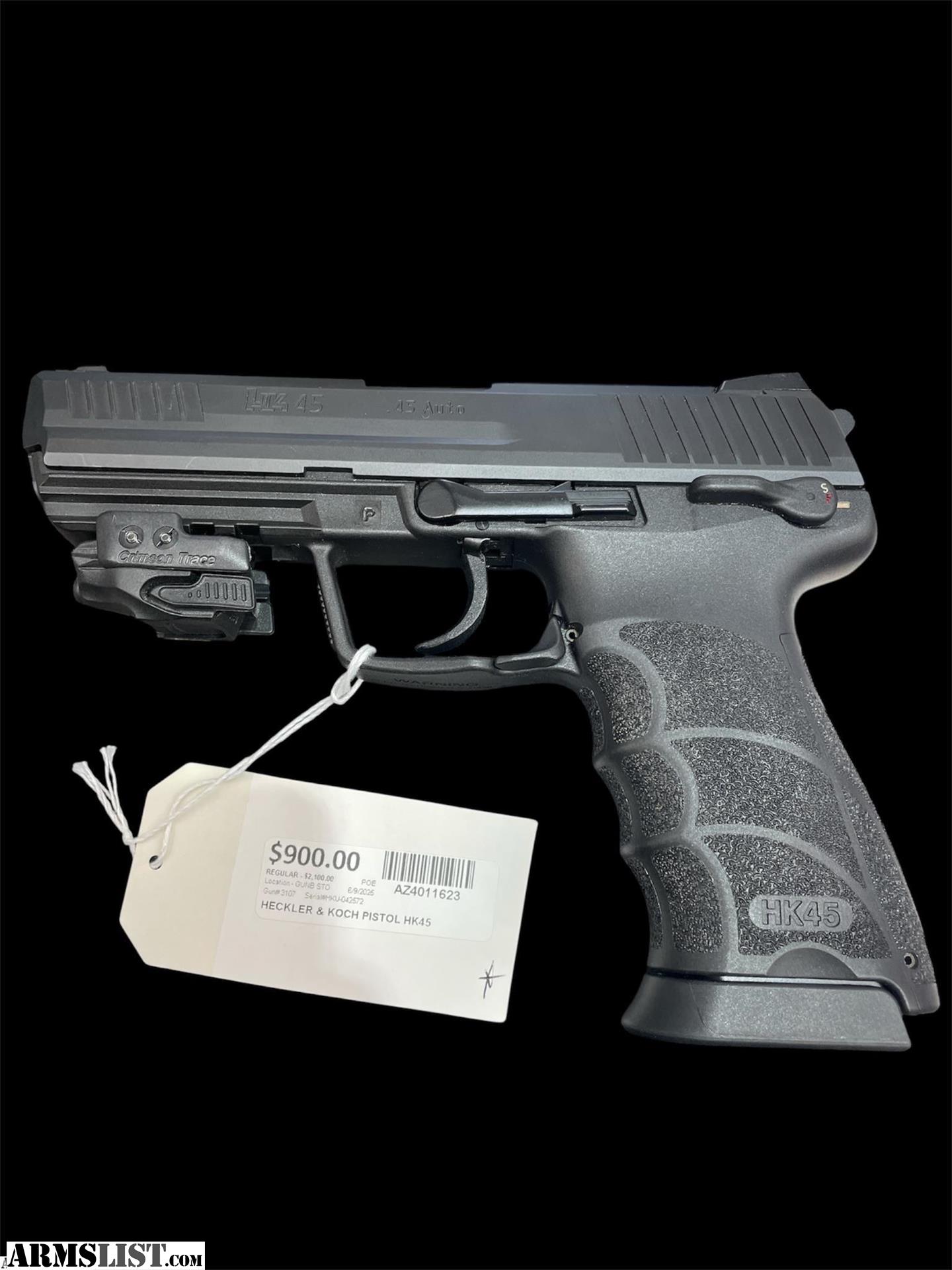 Heckler & Koch model: hk45 used condition Aztec pawn and gold 75th ave and McDowell Rd 2020 N 75th Ave suite 14 Phoenix AZ 85042 (623...849...0900) Hours Mon thru Fri 9am to 6pm Sat and Sun 10 am to 6pm