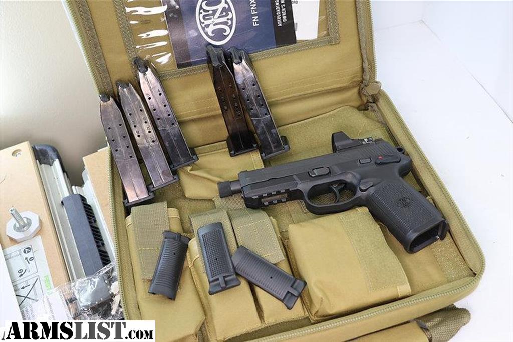 Listed here is an FN FNX-45 chambered in .45 ACP, in excellent condition and ready for just about anything! This package is fully loaded—featuring a Leupold Deltapoint Pro red dot sight professionally mounted, five magazines, the original FN custom range bag, interchangeable backstraps, and all other accessories that originally came with the firearm. The pistol has been very well cared for and shows minimal signs of use. Everything functions exactly as it should, and this is the ultimate setup for home defense, duty, or range use.
