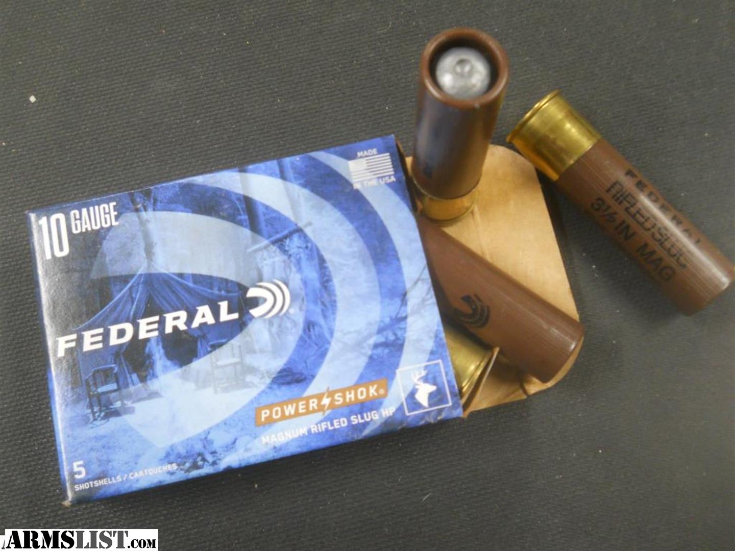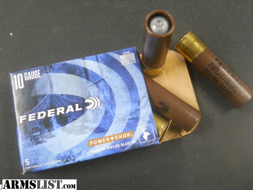Factory New ... Federal Power/Shok 10 Gauge Magnum Riffled Slugs HP. 3.5 inch / 1.75 oz Rifled Slug... We are a small Brick and Motar Store: Tried and True Arms & Ammo 755 B Cambridge St. Cumberland, Ohio 43732.