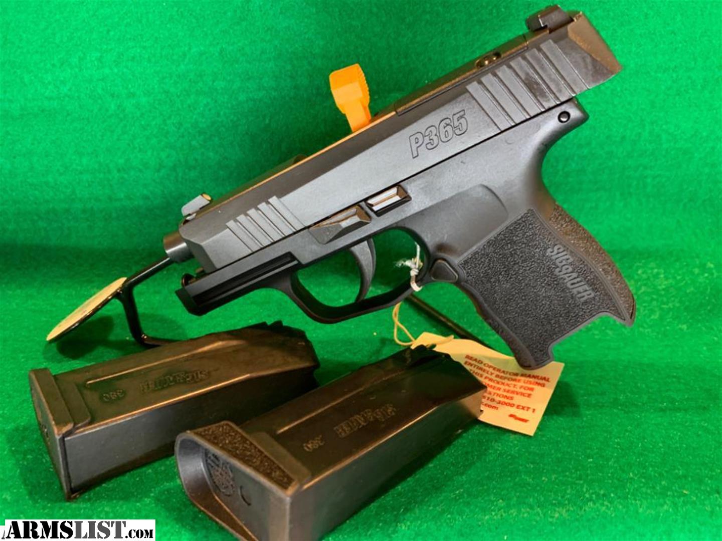 Sig Sauer P365 380 ACP, 3.1IN, Nitron, Blk, Striker, Siglite, Polymer Grip, (2) 10Rd Steel Mags Pappy's Arms LLC 802-795-0054 pappys.arms@gmail.com
