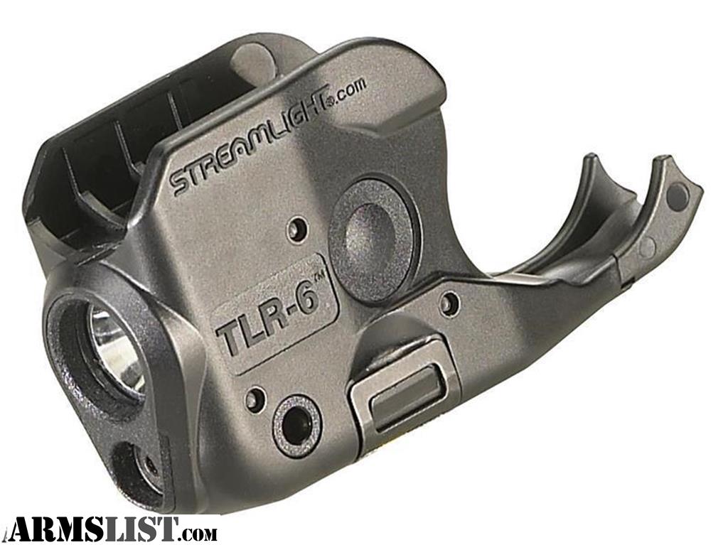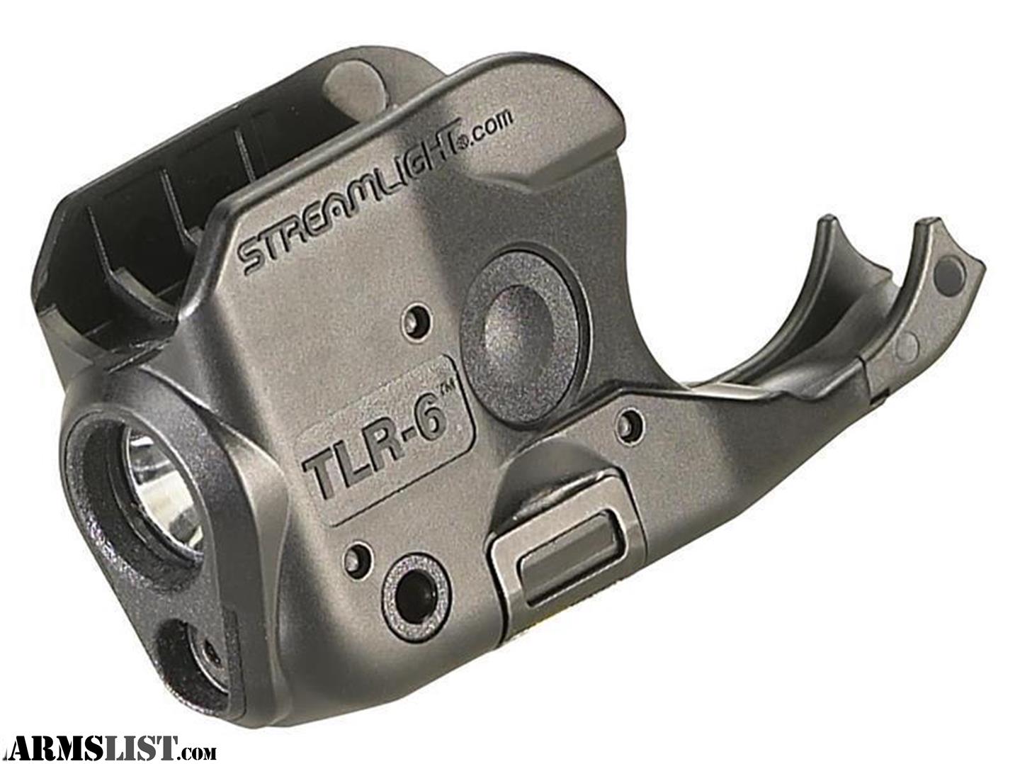 4th Generation: 20, 23, 29, 35 69291 Rail Mount Springfield Armory XD, XD(M), XD MOD.2 69293 Rail Mount M&P M&P Standard and Compact Railed (Not the M&P Shield) 69284 Rail Mount Sig Sauer P365 Sig Sauer P365 Streamlight TLR-6 Tactical Gun Mount Flashlight Features Powered by two (2) CR1/3N lithium batteries which are included C4 LED illumination 640-660nm red laser LED Rating: Up to 2,000 candela peak beam intensity - up to 100 lumens measured system output - 89 meter beam distance Run Time: 1 hour -LED only or LED and laser and 11 hours laser only. 10 minutes auto shut-off on all modes to conserve batteries Windage and elevation adjustment screw mounted in brass bushing for dependable zero retention of laser Three modes - laser only, laser and LED or LED only accessed by push-button on both sides Change batteries while light is still attached to gun Removable cover for easy attachment / removal Impact-resistant polymer construction IPX4 water resistant Serialized for positive id Withstands heat and cold with operating temperatures of -20 deg F to +120 deg F Length: 2.30" - 2.97" (depending on model) Width: 0.85" Height: 1.42" Weight: 1.12 oz - 1.27 oz (depending on model) Assembled in the USA Streamlight 69270 69271 69272 69273 69274 69275 69276 69277 69278 69290 69291 69293 69284 Streamlight TLR-6 Tactical Flashlight with Laser Sight has a Limited Lifetime Warranty against defects.