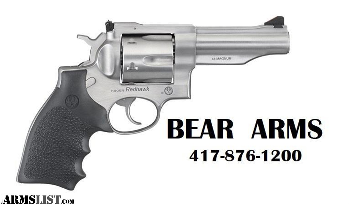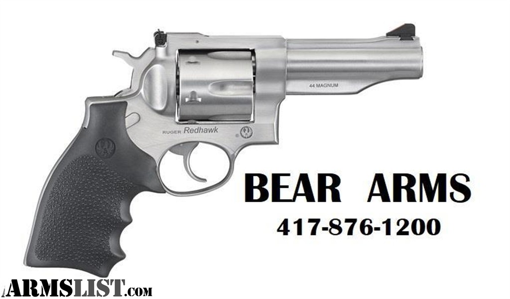 MANUFACTURER: Ruger FAMILY: Redhawk Series MODEL: Redhawk TYPE: Revolver ACTION: Double / Single Action CALIBER/GAUGE: 44 Magnum | 44 Special FINISH: Satin FINISH TYPE: Stainless Steel FRAME: Steel Frame STOCK/GRIPS: Rubber Grips BARREL: 4.2" OVERALL LENGTH: 9.5" RATE-OF-TWIST: 1-in-20 CAPACITY: 6 SIGHTS: FS: Ramp / RS: Adjustable SIGHT TYPE: Adjustable Sights WEIGHT: 47 oz. SHIPPING WEIGHT: 4.7 lbs. SAFETY FEATURES: Transfer Bar CASE: Plastic ADDL INFO: Barrel Sleeve and Shroud ADDL INFO: 11-Degree Target Crown MFG MODEL NO: 5044 BEAR ARMS 417-876-1200