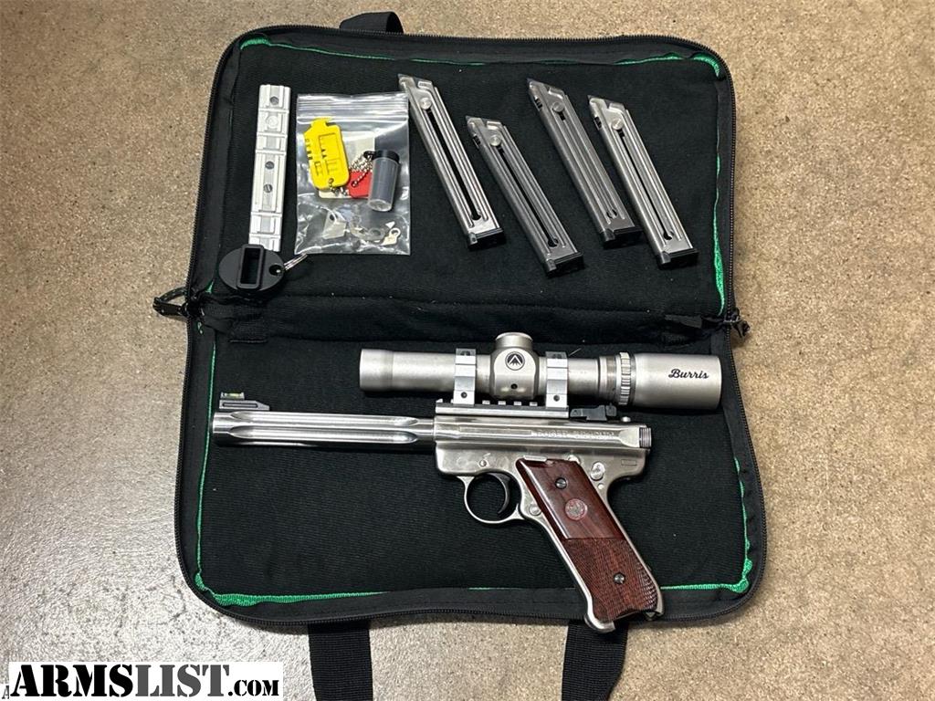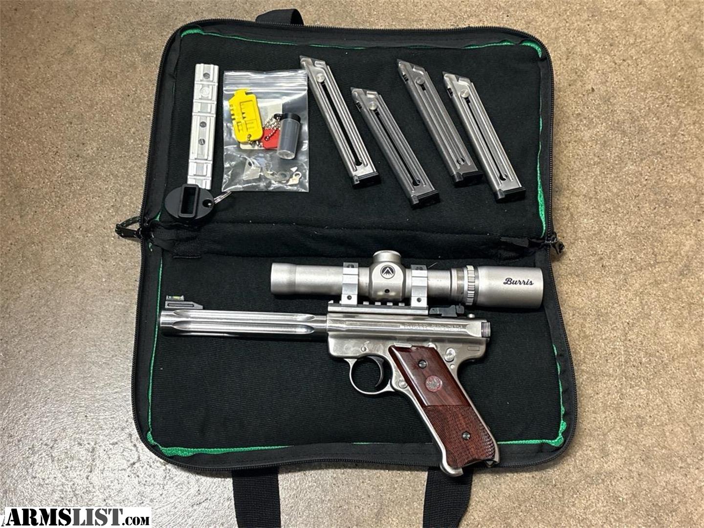 Ruger Mark III Hunter 22lr 6.50" Semi-Auto Pistol - Burris Scope - 4 Mags https://shop.newcastleguns.com/Item/Details/Ruger-Mark-III-Hunter-22lr-6-50-Semi-Auto-Pistol-Burris-Scope-4-Mags/356f1d204cff40caa5a466cec95e4822