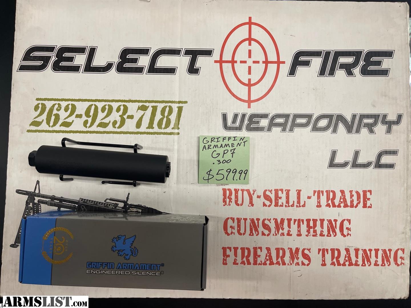 We have for sale a brand new in box Griffin Armament GP7 30 cal silencer! This is in stock and available for in store purchase today! Or if you are out of state, we can ship for $29.99! This will transfer tax free to your dealer on an efiled form 3. Once at your dealer you are responsible for completing the form 4 process, paying the tax stamp and any associated transfer fees.