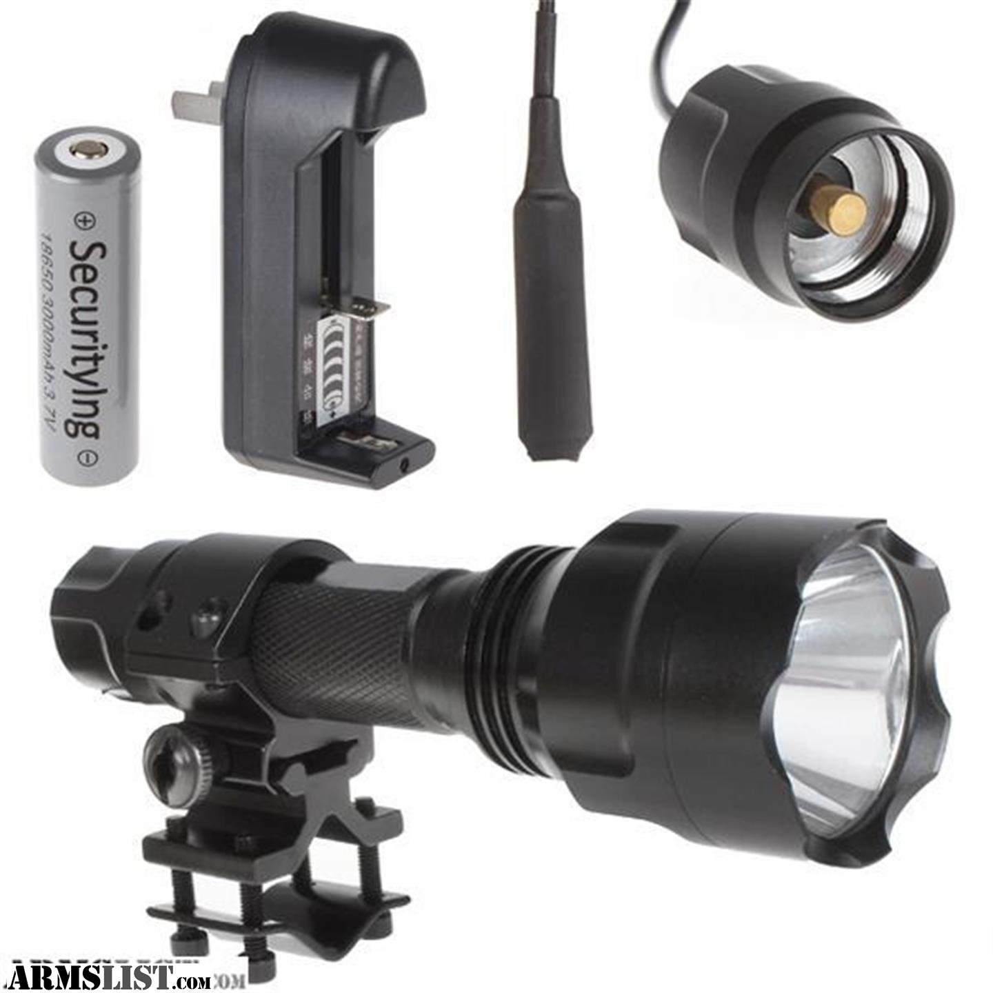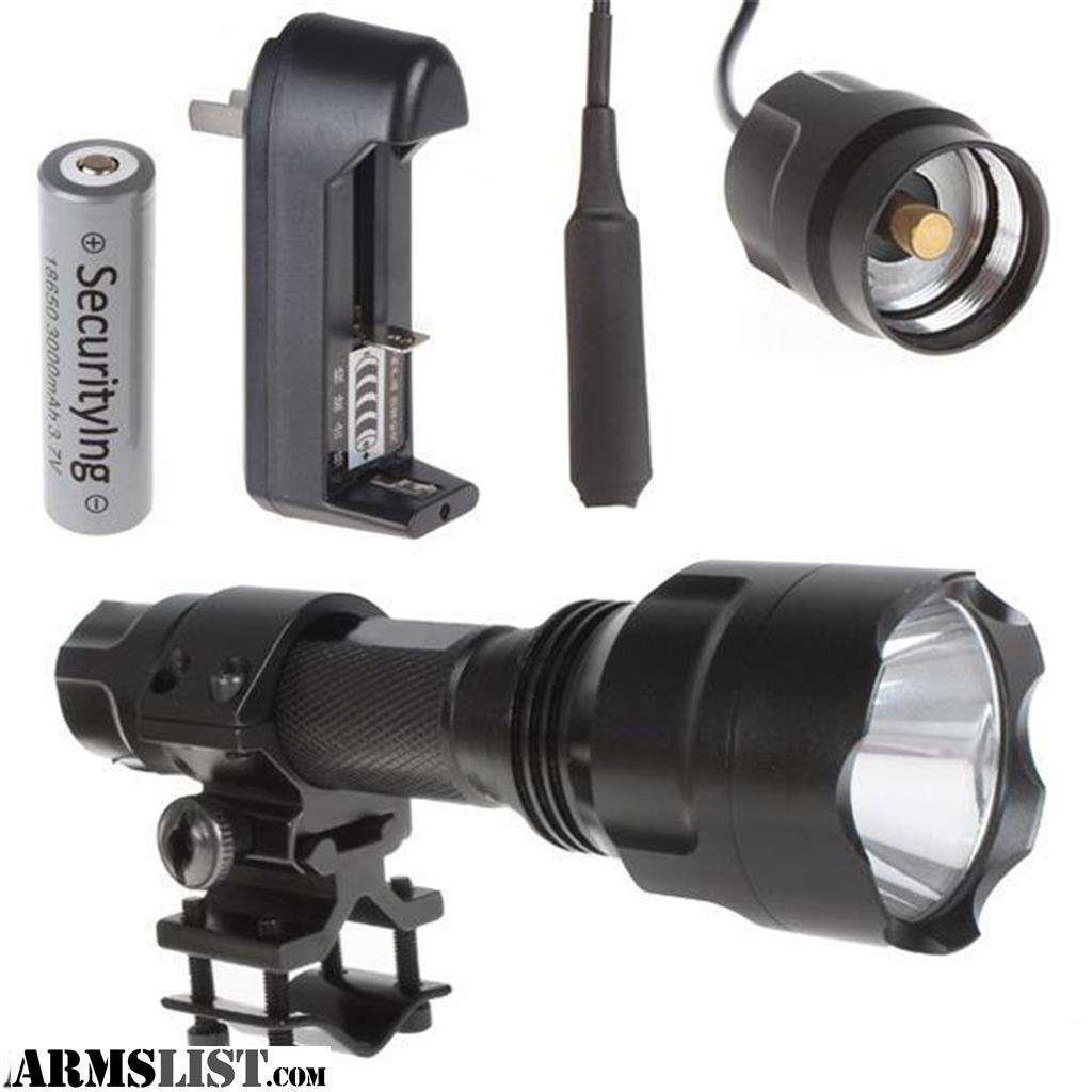 Tactical Flashlight set up for rifles. Come with 1000lm Flashlight Mount Pressure switch 2 18650 rechargable batteries and Charger.