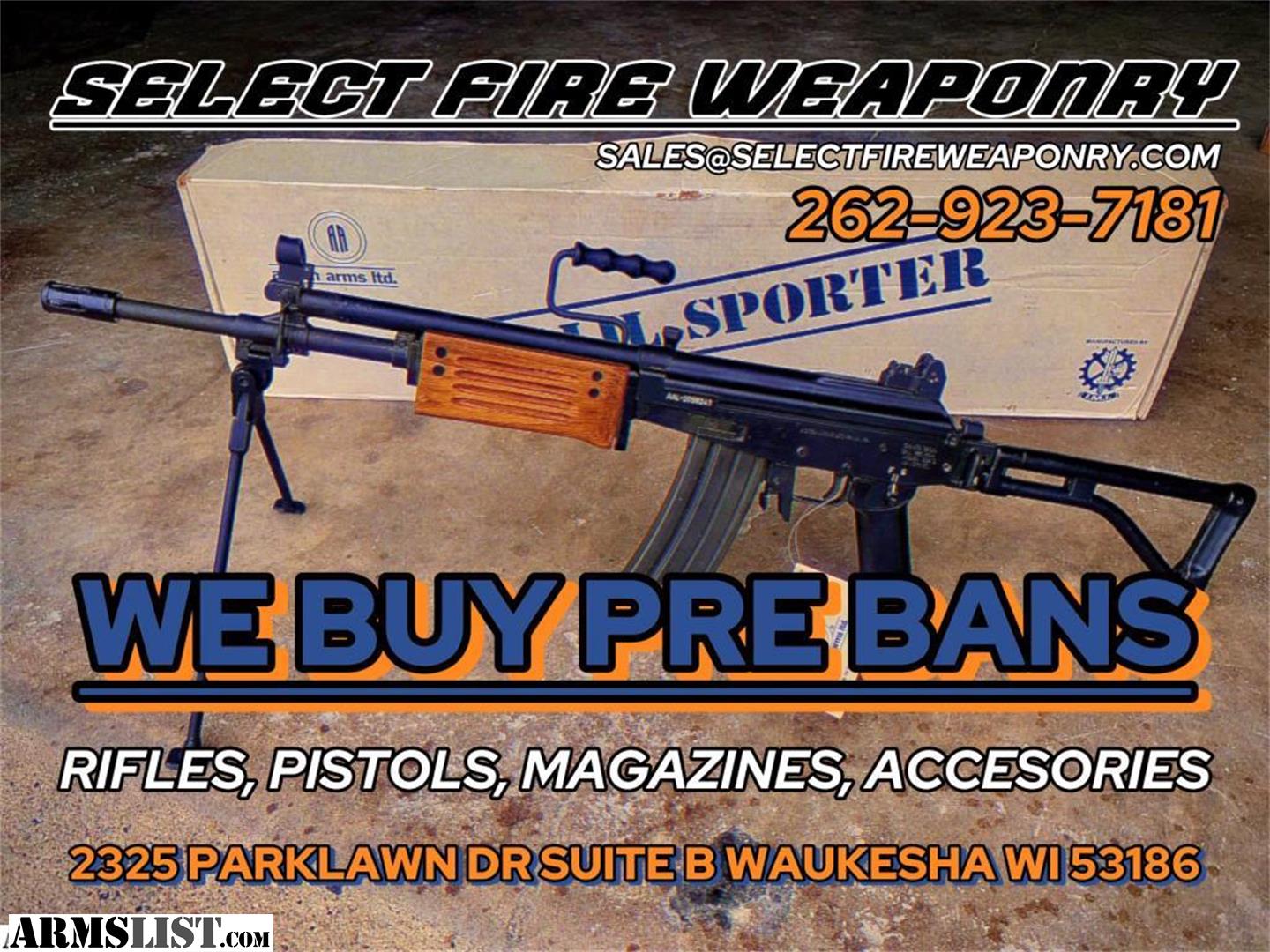 Due to the high volume of spammers, We will not respond to any Email over Armslist. Please call our store at 262-923-7181 shop or email us at sales@selectfireweaponry.com for the best assistance! We will ship guns! Stripped Receivers - $19.99 Complete Lowers $29.99 Silencers $29.99 Handguns $39.99 Long Guns $49.99 AR Pistol/SBR/ETC.. $49.99 MG POR WE BUY GUNS! Large estates or individual pieces. We buy Machine Guns! Our store is located between Bluemound road and and Moreland blvd off of Parklawn Drive in Waukesha, just off of I-94! We buy, sell, and trade all types of firearms and accessories. Our shelves are stocked with around 1500 guns of all different varieties. We stock the widest variety of NFA items such as silencers, SBR's, SBS's, AOW's, and transferable machine guns. We buy guns! Including machine guns! Our Armslist listings do not reflect everything we have in stock! Please come in to check out our full inventory of firearms, ammo, and silencers. -All Prices posted posted are Firm. -All NFA item prices DO NOT reflect cost of NFA tax stamp -All buyers must pass a background check before the transfer is to occur. -All in state purchases are subject to 5% sales tax. -All handgun prices do not reflect the $12 state background check fee. -All sales are final no refunds or exchanges. -Original purchase price and background check fees are none refundable. -All firearms must be picked up with in 30 days of purchase or any down-payment will be lost. -All RED tag firearms are consignment and will have a 3% credit card fee Every thing we post is physically in stock at the time we post it. Every once in a while we sell something posted on here and it doesn't get deleted that instant, we do our best, dont get mad. When in doubt call first before driving. Call us or Stop in and check us out! Select Fire Weaponry 2325 Parklawn dr Ste. A Waukesha, WI 53186 262-923-7181 Mon-Fri 10:00-6:00 Sat 10:00-4:00 Closed Sun