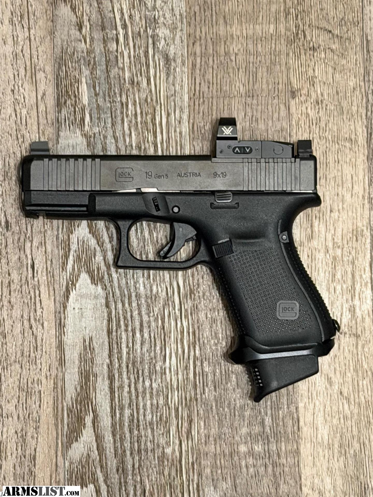 I have for sale a Gen 5 19. Gun is in great shape has seen right around 200 rounds. Will come with everything from factory. Has suppressor height sights and a magwell as well as a vortex venom red dot. Will need to see dl and ccp upon purchase.