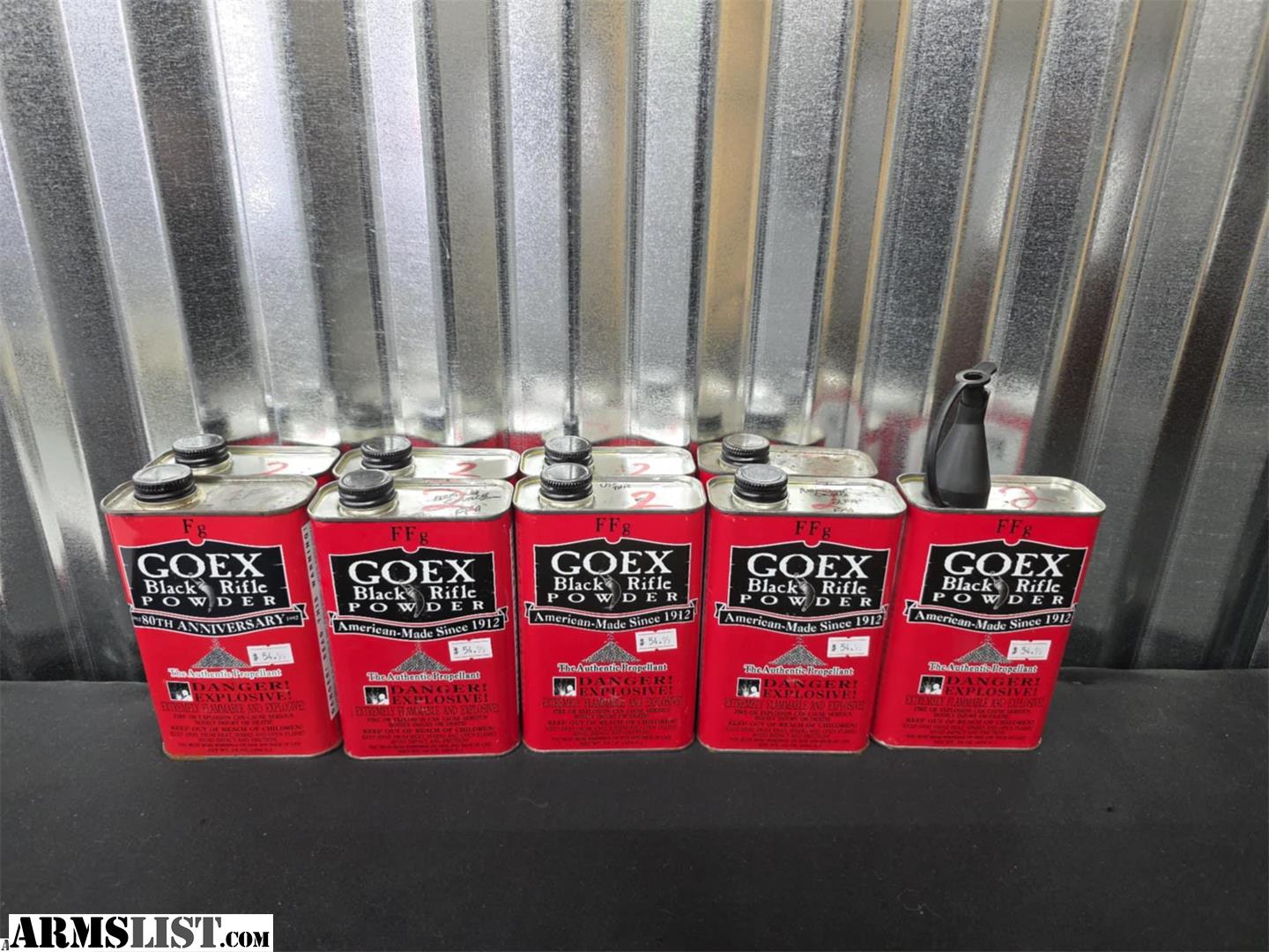 We have 9 cans of Goex Black Powder we can sell as a lot for $270 or each for 54.99