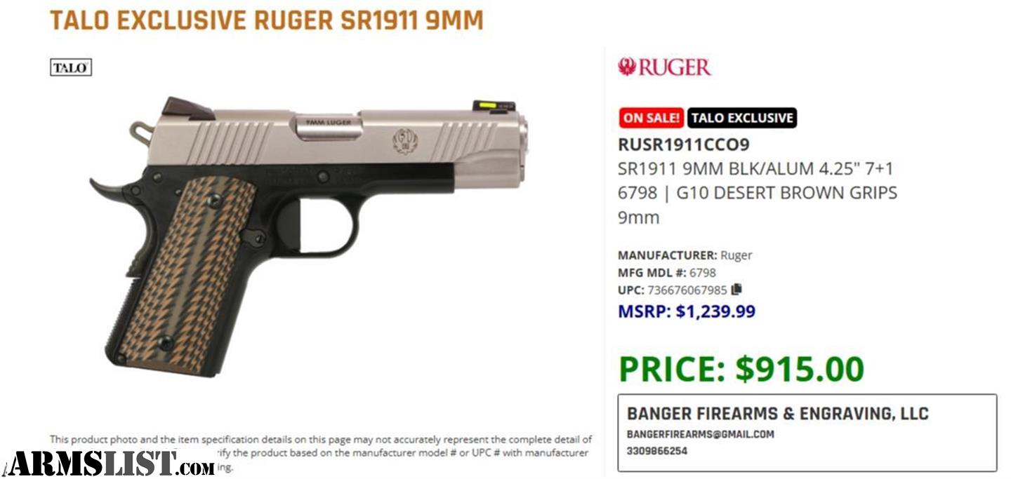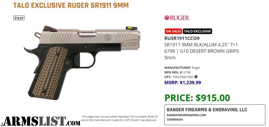 TALO Exclusive Ruger SR1911 9mm ON SALE!TALO EXCLUSIVE RUSR1911CCO9