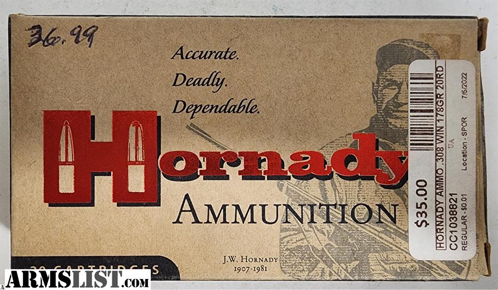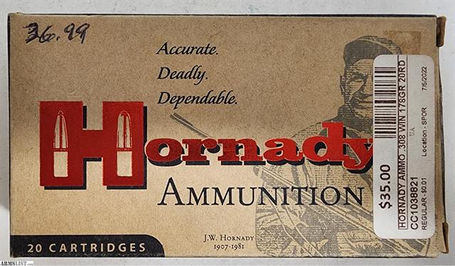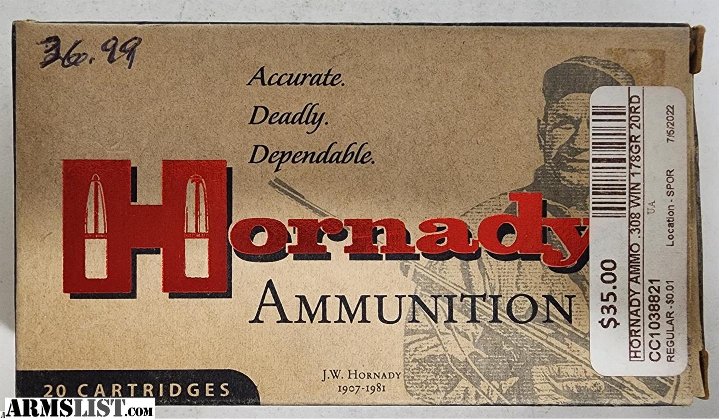Hornady Superformance 308 Winchester Ammo 178 Grain Jacketed Hollow Point Box of 20