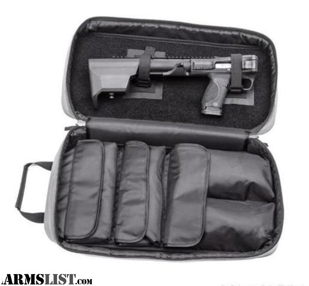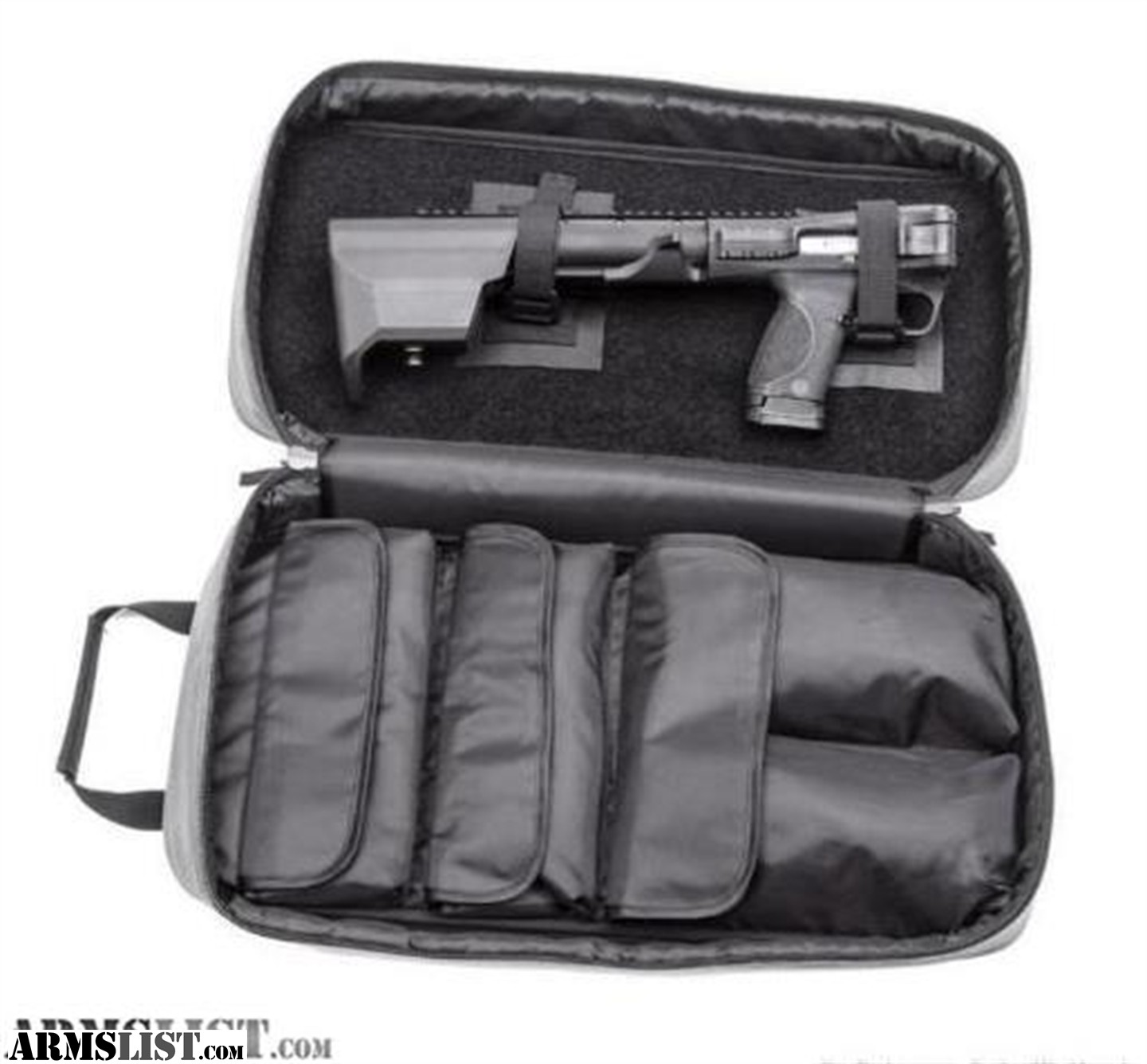 The new optics-ready M&P® FPC™ showcases our brand new, compact, folding design. Coming with (one) 17-round and (two) 23-round magazines, the in-stock magazine storage with quick-release latch makes reloading convenient and quick. The M&P® FPC™ is compatible with M&P® full-size and compact pistol double-stack magazines, and includes a carrying bag with additional storage and Velcro® straps.