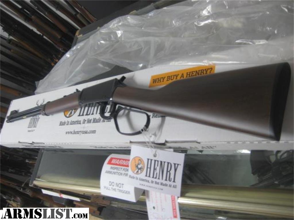 Henry Repeating Arms, Large Loop lever action 22LR rifle, full size adult model. Fires low cost 22LR ammo, will even fire long and shorts. Very nice rifle, made in New Jersey, east coast USA. Henry manufacturing says " made in America, or not made at all". Pay a little extra, own something that can last a lifetime and a great family keepsake. The Henry Lever Action is a classic Western style lever action rifle, and one of the most popular .22's on the market today. It features an extremely attractive American walnut stock, the quality of which can only be found on guns three times the price. The action is exceptionally smooth, so smooth many first timers remark that they cannot believe the rifle has any internal parts. You simply have to get one into your own two hands and cycle the action a few times to see for yourself. Action: Lever Action Caliber: 22 Short/Long/Long Rifle Capacity: 12 LR/17 Short Finish: Blued Stock: Walnut Trigger: Single-Stage Barrel Length: 16.1" Overall Length: 34”